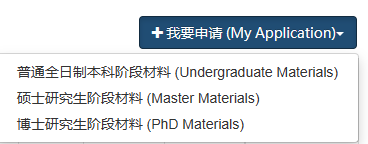 2、点击右上角“我要申请”,选择申请材料相应的学习阶段
